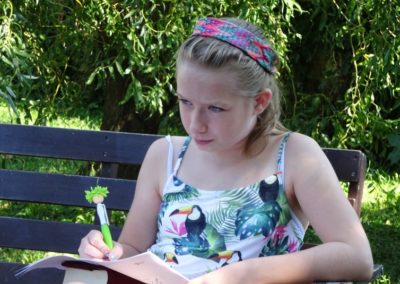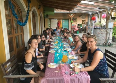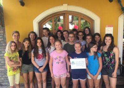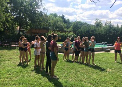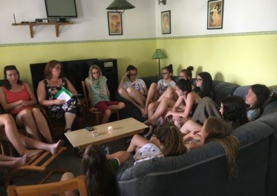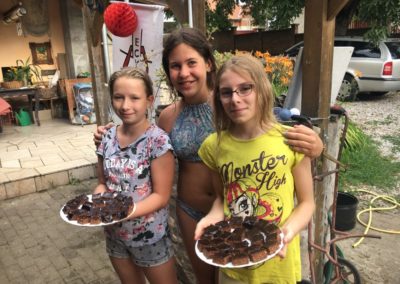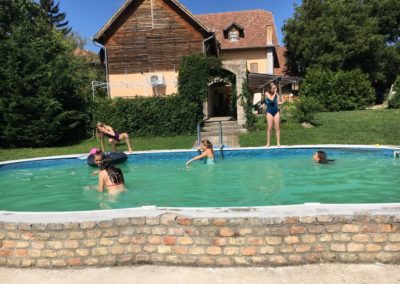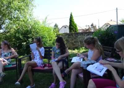 Egy barátságos panzió gyönyörű kerttel, hűsítő vizű medencével és finom, házias ételekkel várt ránk. Minden adott volt ahhoz, hogy öt, vidámságban, élményben és lelki táplálékban gazdag napot töltsünk el együtt. Nekem ismert terep volt a táborvezetés, hiszen 10 éven át szerveztem és vezettem a NET táborokat, mégis volt benne kihívás is: a kamaszkorú ECyD-es lányok lelkéhez megtalálni az utat, olyan programot összeállítani, amiben jól érzik magukat és a végén azt mondják: jövőre is jövök! Ebben volt nagy segítségemre barátnőm, Kollár Ági, valamint volt és jelenlegi ECyD csoportvezetők: Nóri, Marica és Johanna. A tábor utolsó másfél napjára Szász Csaba atya, Krisztus Légiósa is csatlakozott hozzánk, akinek jóvoltából szentségekhez is járulhattunk.