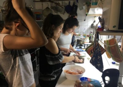 A lányok nyiladozó háziasszonyi képességeiket is kamatoztathatták: egy élményvacsorával ajándékozták meg egymást – és minket is. A főételt a hetedikesek, a desszertet a hatodikosok készítették, az ötödikesek pedig gyönyörű terítést és dekorációt varázsoltak hozzá.