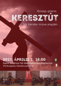 Sok szeretettel hívunk Sík Sándor keresztútjának megzenésített előadására április 1-én 18 órakor. Helyszín: Szent II. János Pál Iskolaközpont díszterme.
