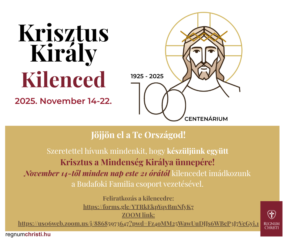 Szeretettel hívunk mindenkit, hogy készüljünk együtt Krisztus a Mindenség Királya ünnepére!