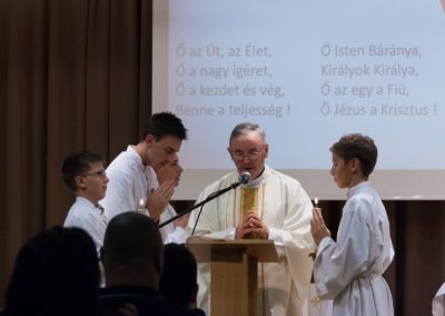 A homíliát Szabó-Molnár Bálint atya mondta, különösen odafigyelve a legkisebbekre, hogy megértesse velük is, hogy Krisztus miért volt különleges király a földön. A kicsik (és nagyok) kórusban válaszolták a megfelelő pillanatokban: „…mert Ő másképpen csinálta”. Így érezhettük át mindannyian, hogy bizony, Krisztus valóban egészen másképp gondolkodott és cselekedett, mint egy földi uralkodó. Az Ő országa nem e világból való, hanem a lelkünkben épülő, élő, eleven valóság az Ő minket szeretetteljesen, szelíden átformáló ereje által.