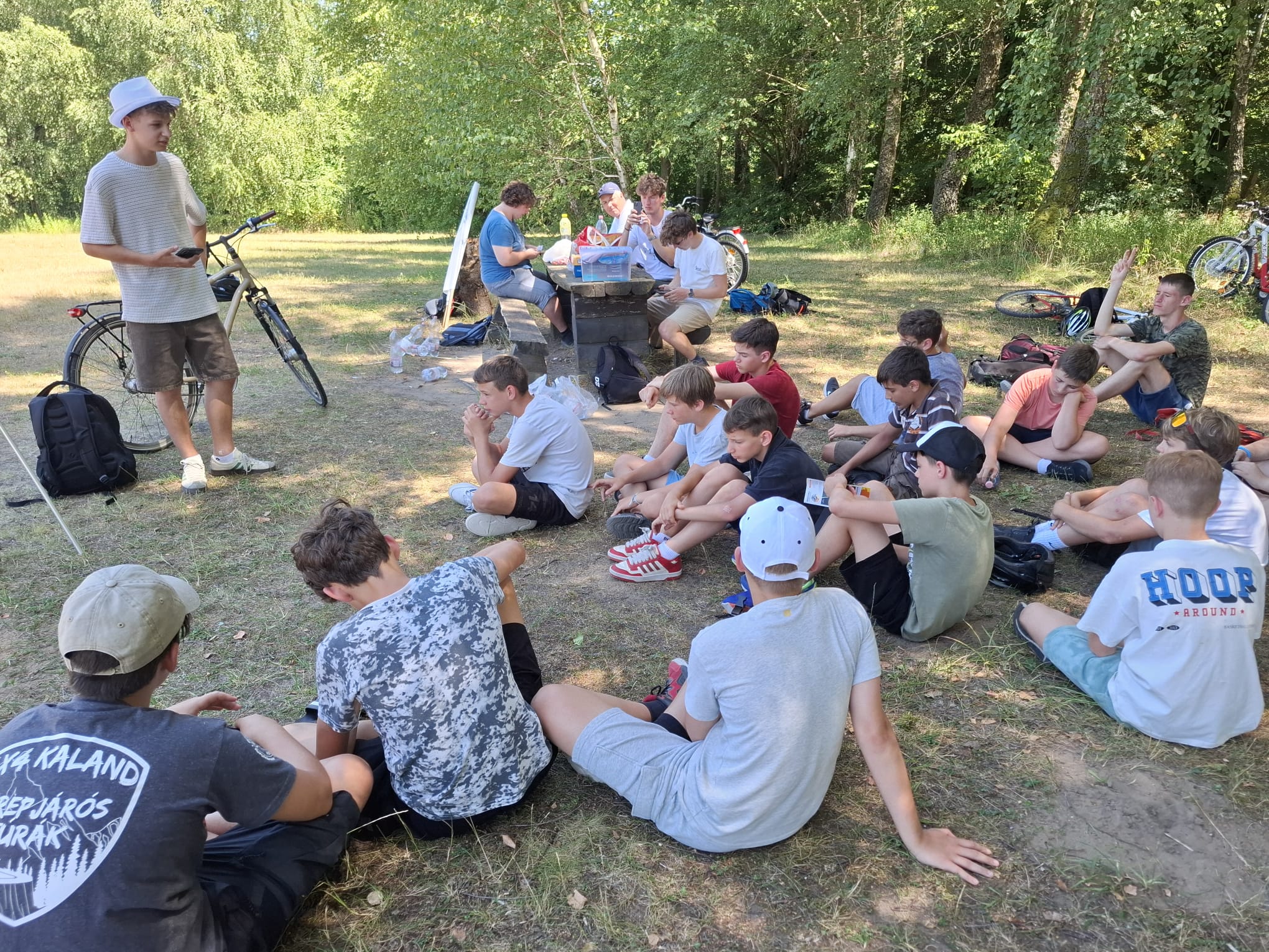 Természetesen mindezek között nem feledkeztünk meg arról, hogy táborba mentünk, tehát első nap volt egy „falutúra” négy állomáson keresztül különböző feladatokat kellett megoldani. Második nap nem maradhatott ki a Zalakaros-i élményfürdő sem. Szerdán biciklikkel a Kányavári szigetre tekertünk, hogy ott még tovább játszhassunk. Csütörtök a Keszthely-i Libás strand és az Alsópáhok-i Bobo Fun Park, péntek pedig a társasjátékok napja volt.