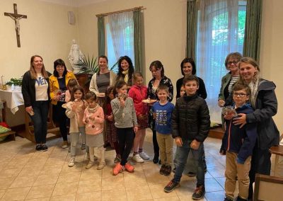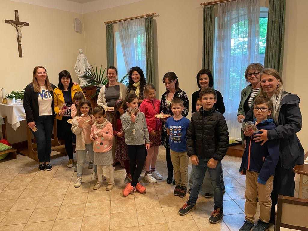 Lelkes családok vettek részt az esős idő ellenére május 18-án vasárnap a Regnum Christi családi napján és az azt követő Szent Anna-pikniken a légiós atyák kamaraerdei otthonában. A napot misével kezdtük, amit közös ebéd követett. Az ízletes gulyáslevessel és az otthonról hozott süteményekkel jóllakva a Mária-imát követően kezdetét vette a hagyományos Szent Anna-piknik. Bár a vizes fű nem kedvezett a piknik plédek kiterítésének, beltéren viszont remekül szórakoztak kicsik és nagyok az anyák napja szellemében szervezett egymásra hangoló játékok, lelki programok által. Az önfeledt nevetésre serkentő majd meghitt összebújásra bátorító játékok után kölcsönösen meglepetés ajándékot készítettek egymásnak az édesanyák és gyerekeik. Míg az anyukák a szárított virágból készült kézműves alkotásokban gyönyörködtek, a kicsik boldogan majszolták édesanyjuk ropiból és pillecukorból készült kreatív építményeit. Jövőre is várunk minden anyukát és csemetéjét a Szent Anna-pikniken, akkora már napsütést is rendelünk.